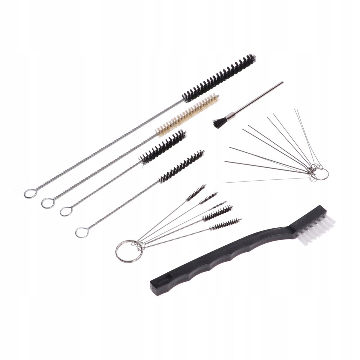 Kompaktiškas valymo rinkinys, skirtas dažymo pistoletų, purkštukų ir kanalų priežiūrai. Leidžia pašalinti dažų likučius iš sunkiai pasiekiamų vietų ir užtikrina sklandų įrankio veikimą.Komplektacija: