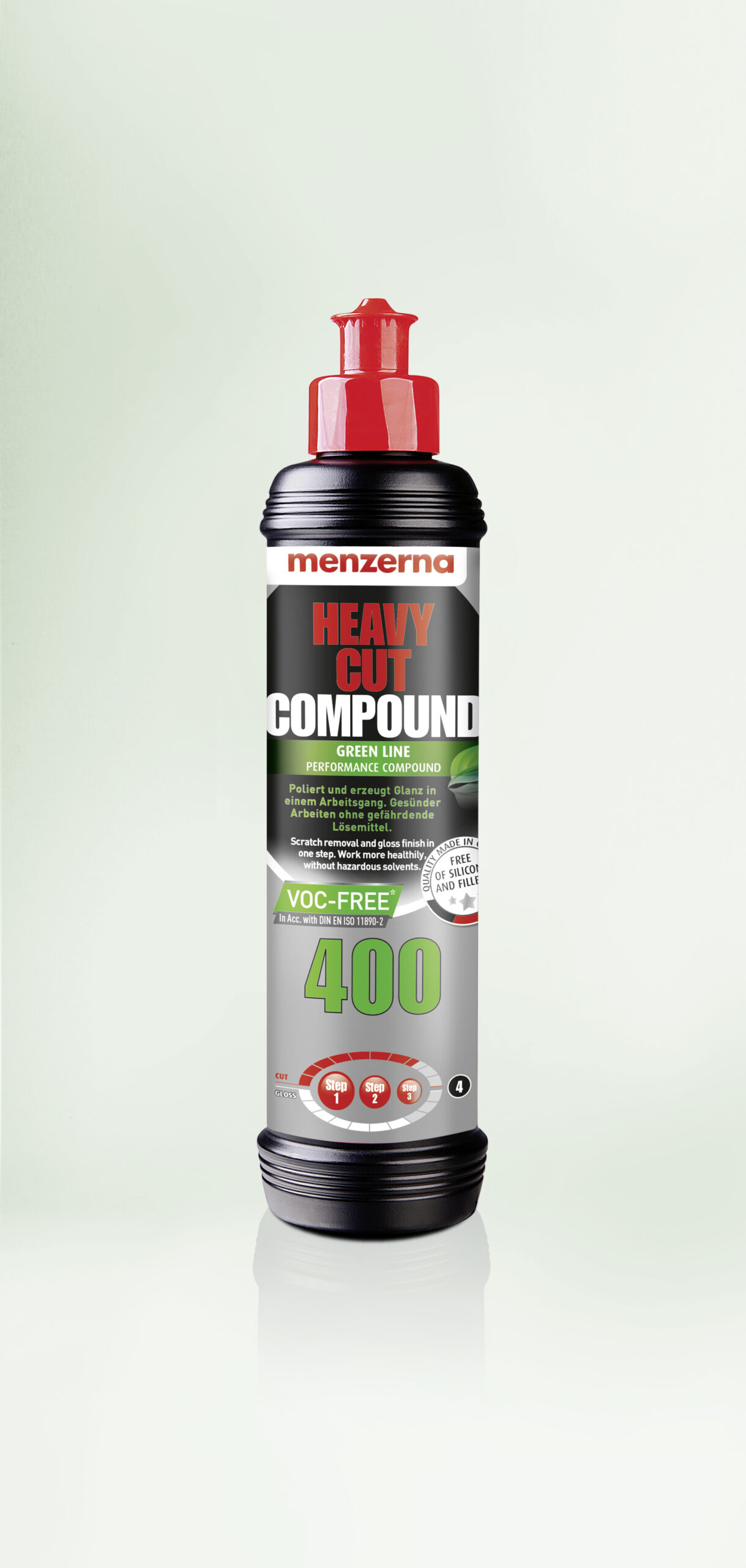 Menzerna Heavy Cut Compound 400 Green Line yra viena populiariausių pastų pasaulyje, pritaikyta saugesniam ir ekologiškesniam darbui. Tai „vieno žingsnio“ (One-Step) tipo produktas, pasižymintis didele pjovimo galia, bet paliekantis itin aukštą blizgesį.
