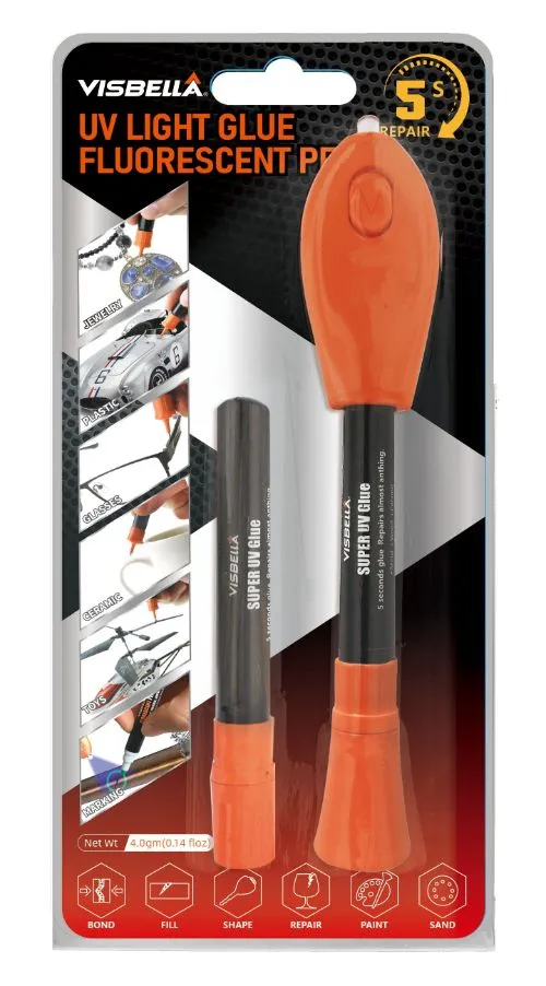 VISBELLA UV šviesos klijai – tai stiprūs skysti plastiko pagrindo klijai kurie lengvai, greitai bei ilgam sutaiso beveik viską. Galima klijuoti metalą, medį, keramiką, stiklą, plastiką, juvelyrinius dirbinius, žaislus, elektroniką ir kt. Šie lengvai naudojami klijai leidžia ilgam sutaisyti pažeidimus tausojant laiką. Skystis sustingsta tik tuomet kai panaudojama UV šviesa. Ši savybė yra saugesnė nei pavyzdžiui super klijų, kuomet jie netyčia patenka ant odos.