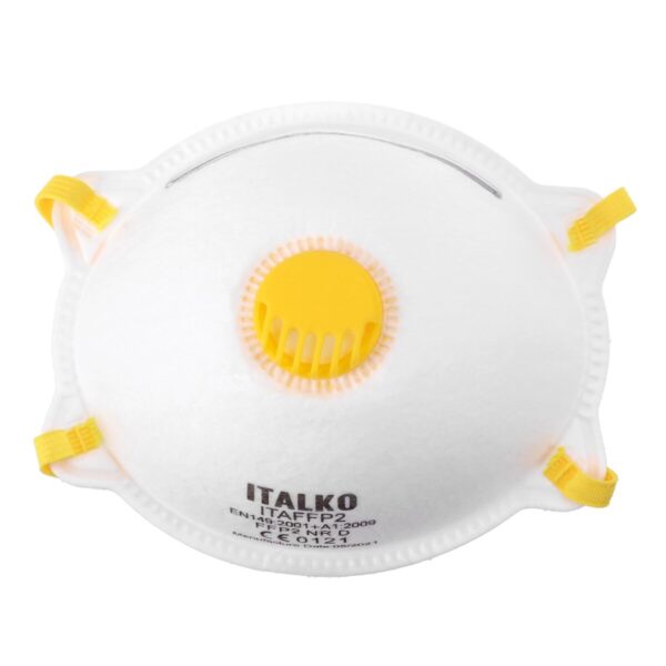 Italko FFP1 su vožtuvu – tai aukštos kokybės vienkartinės apsauginės kaukės, skirtos apsaugoti kvėpavimo takus nuo didesnių dulkių, aerozolių ir dalelių. Vožtuvas užtikrina lengvesnį kvėpavimą ir mažina karščio bei drėgmės kaupimąsi viduje kaukės.